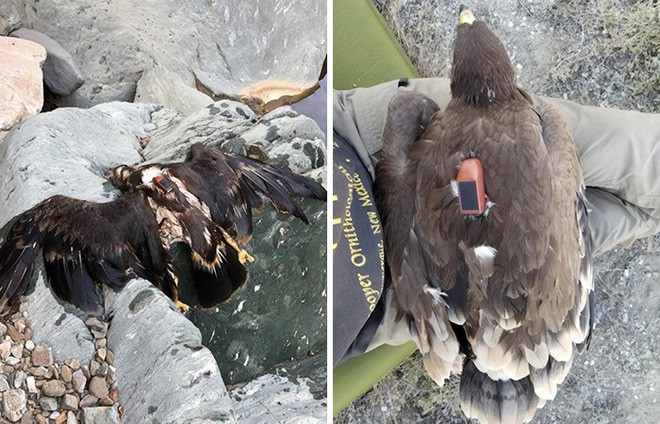 Thứ anh ta tìm thấy là một con đại bàng đã chết với một thiết bị GPS quanh cổ nó. Khi kiểm tra kỹ hơn, trên đó còn ghi họ tên và địa chỉ email của chủ nhân.